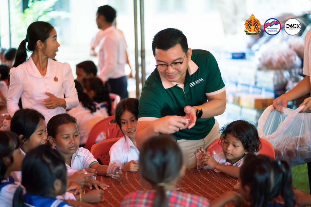 Mega F&B contributed significantly by providing a “Solidarity Lunch,” as well as school supplies and a monetary donation to 56 teachers and staff. Over 500 students participated, representing nine primary schools located along the border of Banteay Ampil District.